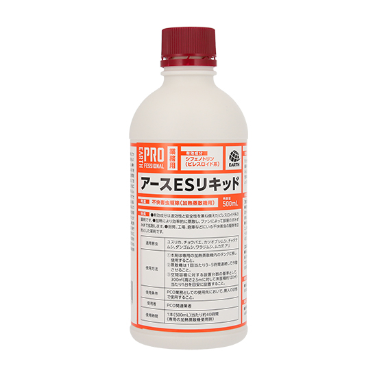 アースESリキッドより低残留性の薬剤で、食品・医薬品工場などの前室、厨房、店舗内等での使用に適しています。
