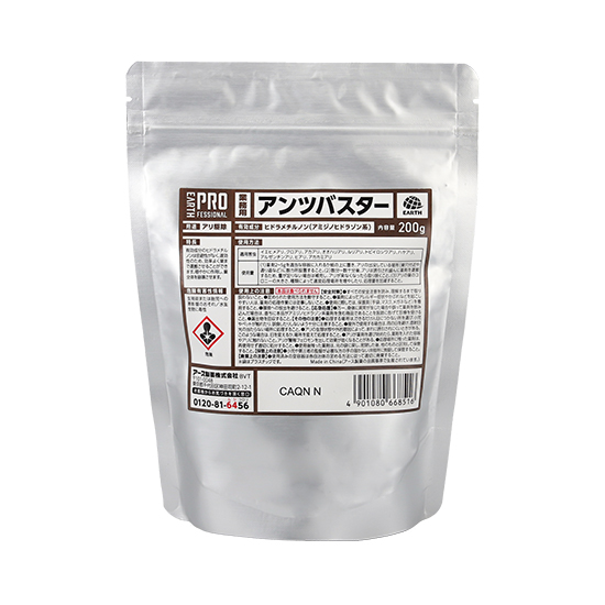 ※アンツバスターの効果的な処理方法:アリの出ている場所に応じて適宜設置します。室内で使用する場合は、アリが出入りしている隅の方か、侵入口を確かめ、できるだけ巣に近い方に置くと効果的です。戸外では直射日光を避けて巣の近くに置いてください。