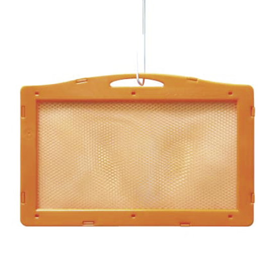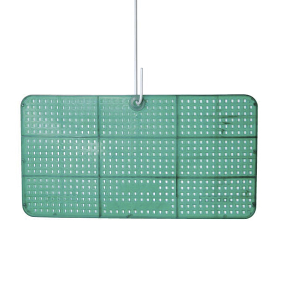 | オオチョウバエ、ホシチョウバエ、ノミバエ、コバエ、ユスリカ | 浄化槽、汚水槽 | 5~7人槽の単独浄化槽や小型合併浄化槽に対して、本品1~2枚を嫌気ろ床槽や沈殿槽、ばっ気槽などの各槽内(マンホール内の溝や蓋の裏側など)に吊るして使用すること。 内容積が1m3を超える嫌気ろ床槽には、枚数を適宜増やすこと。7人槽を超える浄化槽や汚水槽、あるいはホシチョウバエ、ノミバエの発生が多い場所では、各槽に設置する枚数を適宜増やすこと。 |